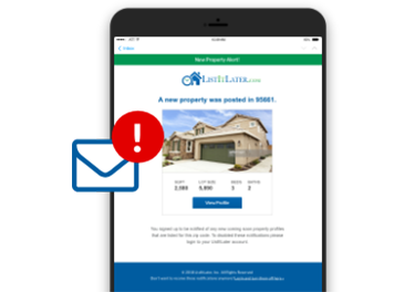 Receive a text or email alert when a property is pre-listed for sale on ListItLater, and or becomes available for sale.